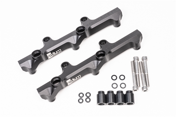 These Radium Engineering fuel rails are compatible with the VR38DETT engine found in the Nissan R35 GT-R. They are machined from 6061 aluminum and anodized black for compatibility with all popular fuel types including E85. Manufactured with a large internal bore, the fuel rail can support all necessary engine power requirements. Each rail has four 8AN ORB ports