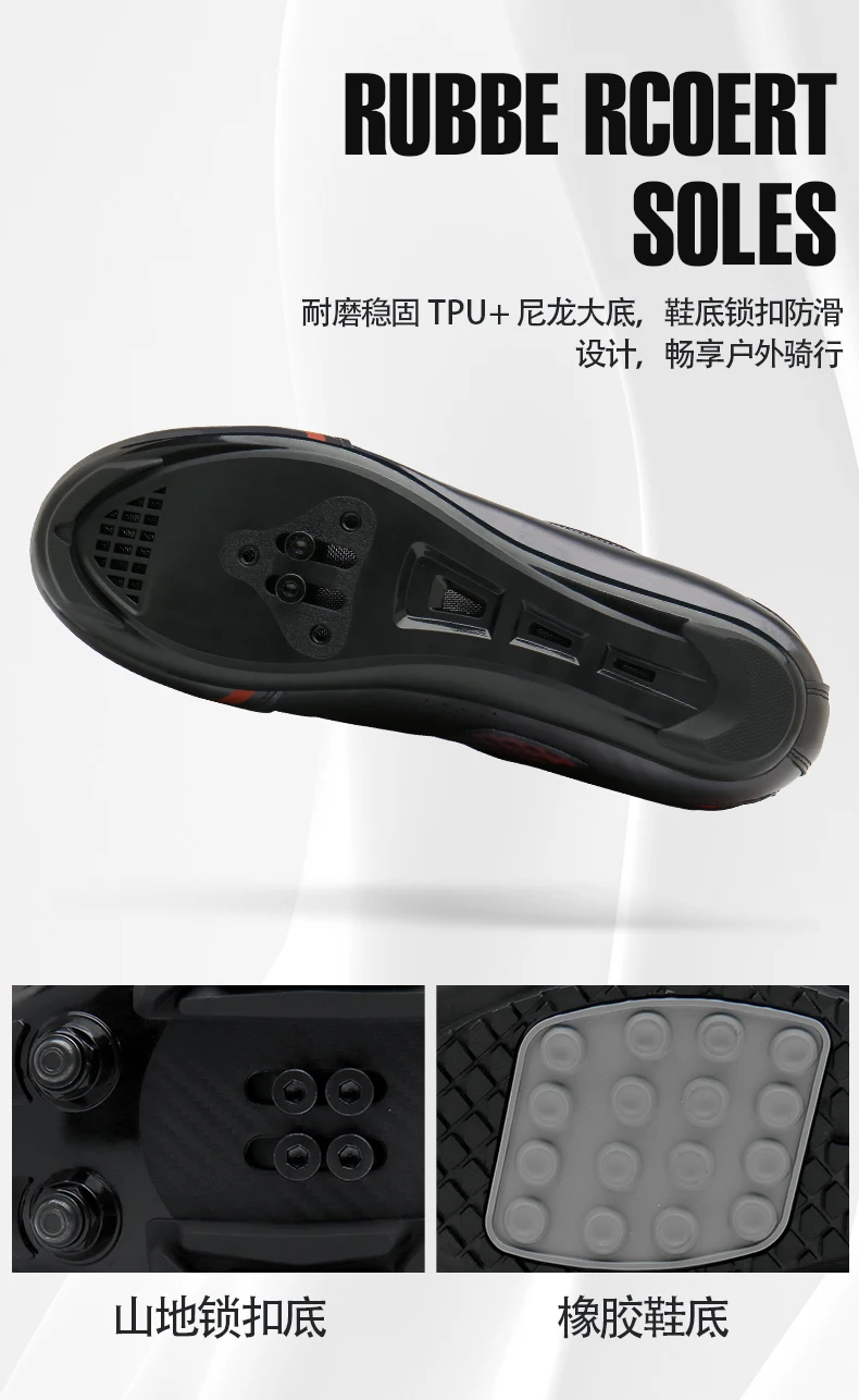Compatibility with Cleat Systems: Men's cycling shoes are designed to be compatible with various cleat systems, such as SPD-SL, Look, or Speedplay, depending on the type of cycling being done. This ensures flexibility in using different pedal systems and allows riders to easily switch between different bikes or disciplines.