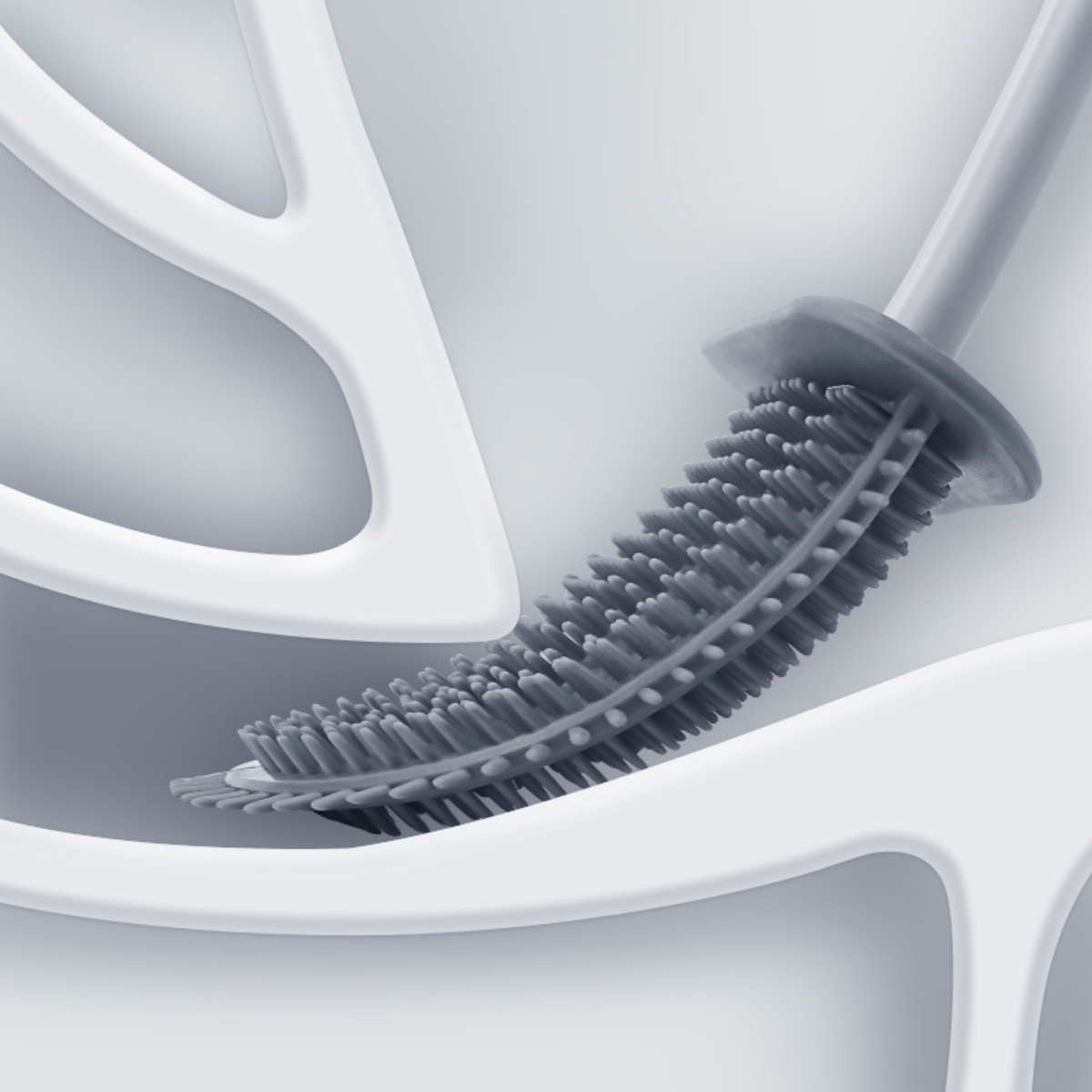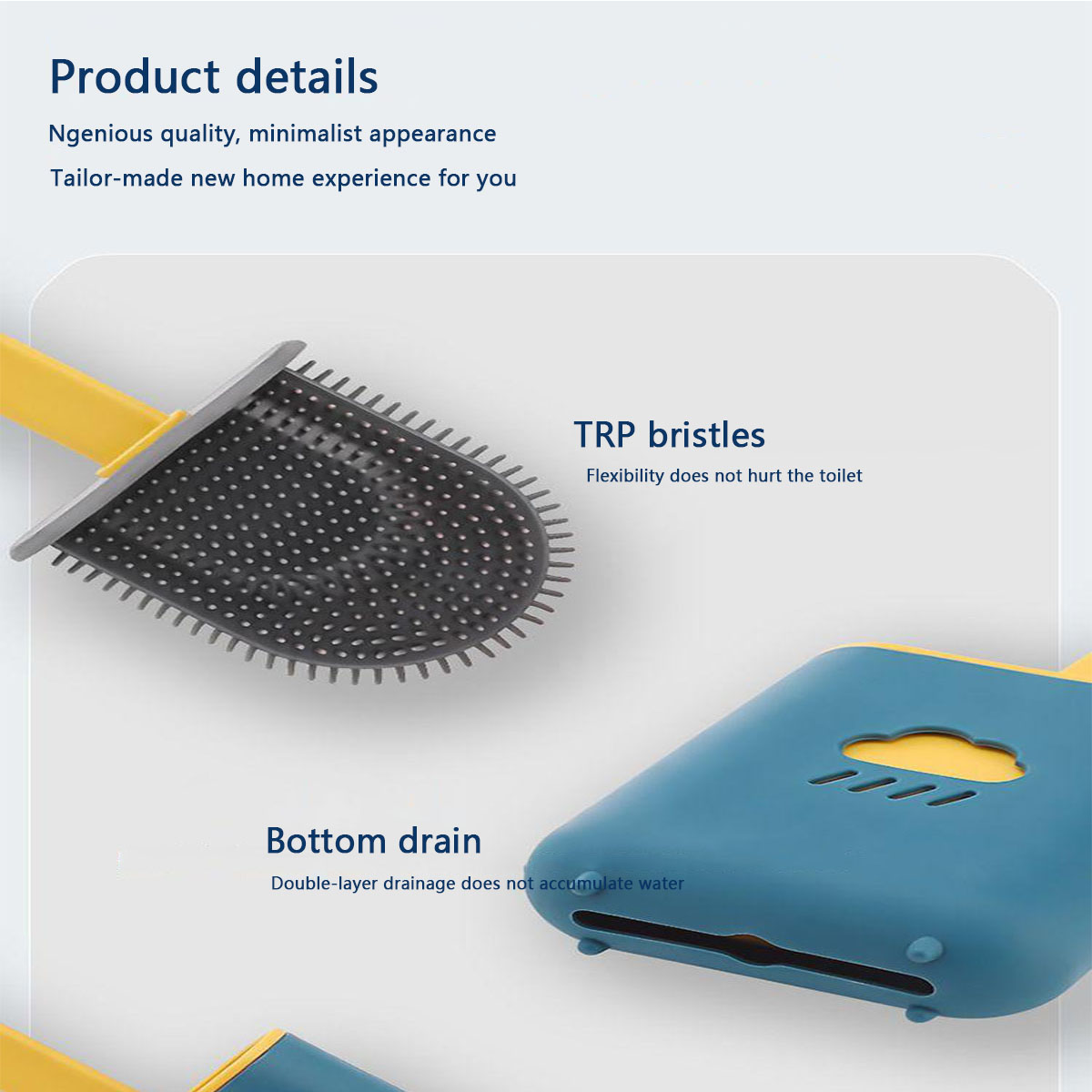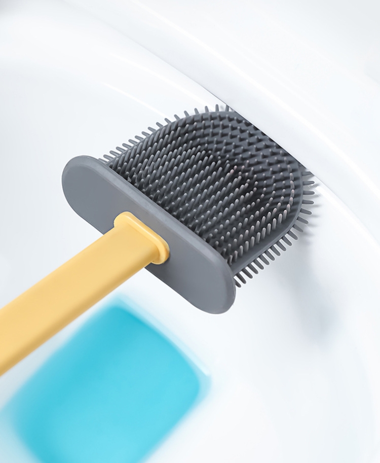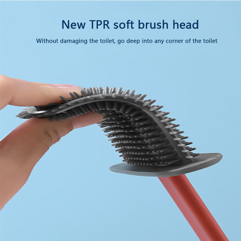 Silicone WC Cleaner Toilet Brush Flat Head Flexible Soft Bristles with Holder