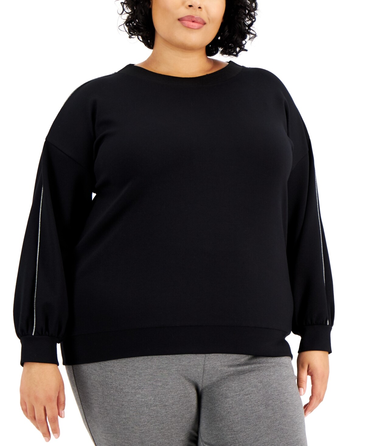 The metallic trim adds fun interest to this sweatshirt from Alfani. Pair it with a variety of bottoms for a chic finish. (Clearance)