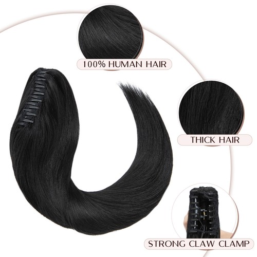 1.Material: Our clip ponytail is made of 100% real human hair, very soft, silky, and natural, which can better blend with your own hair. Our clip size is 3.5 inches, which can better grip your hair and won't fall off even after wearing it for a day.