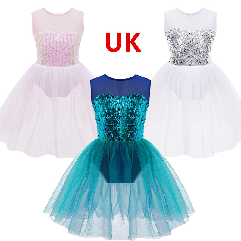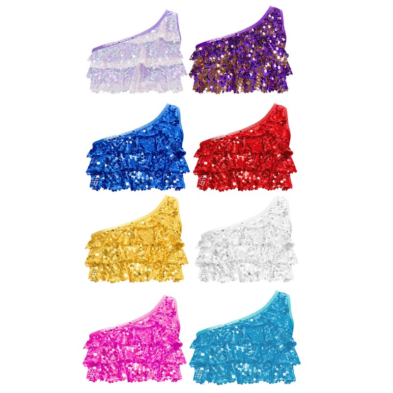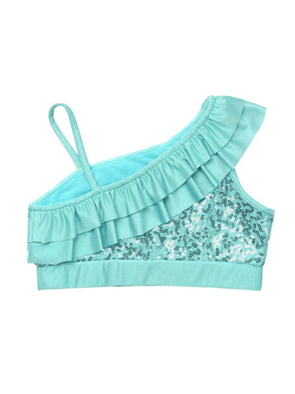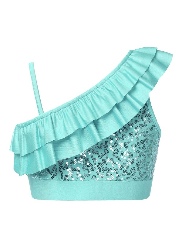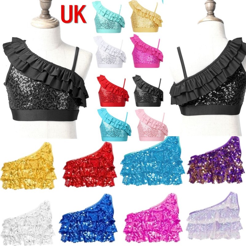 UK Girls Kids Shiny Sequins One Shoulder Crop Tops Ballet Jazz Modern Dance Wear