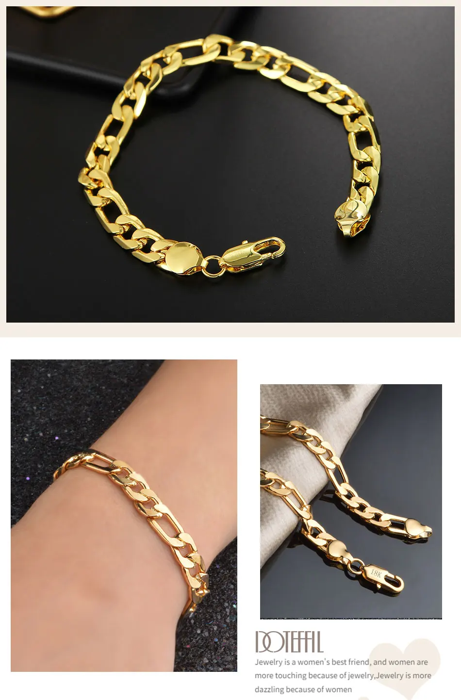 DOTEFFIL 925 Sterling Silver 18K Gold 8mm Classic Bracelet For Women Man Wedding Engagement Party Fashion Jewelry