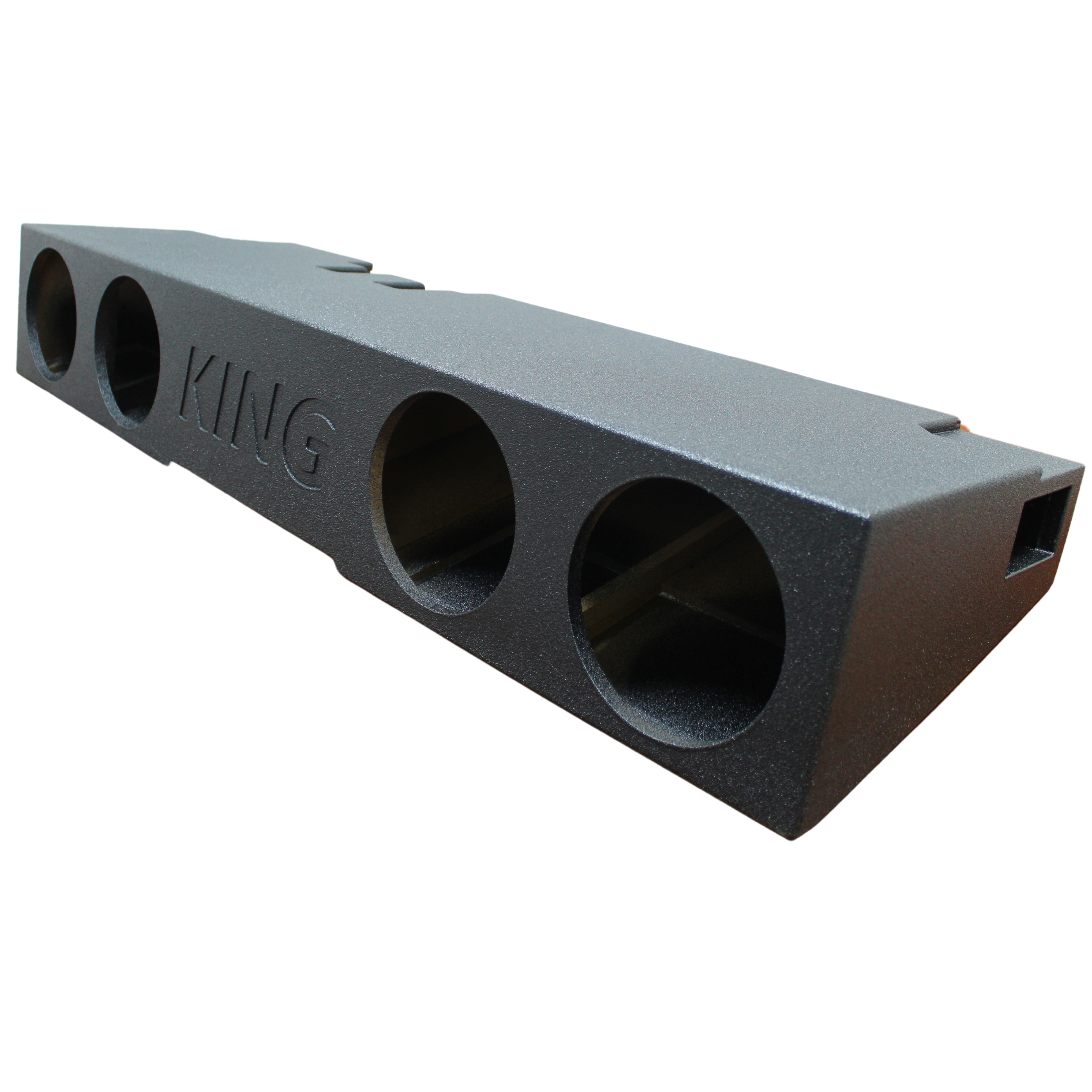 The AK-G25-48 from King Boxes is a meticulously designed enclosure tailored for the '07-'18 Chevy Silverado and GMC Sierra Crew Cab models. This front firing sealed box, with its 9.5â mounting depth, ensures an exceptional audio experience with deep, resonant bass. The durable sprayed finish not only provides protection but also enhances the aesthetic of your truck's interior.