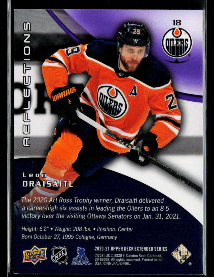 | 2020-21 UD Triple Dimensions Reflections Amethyst Leon Draisaitl 298/300 #18 |