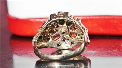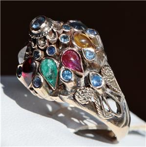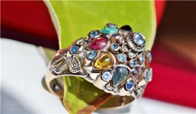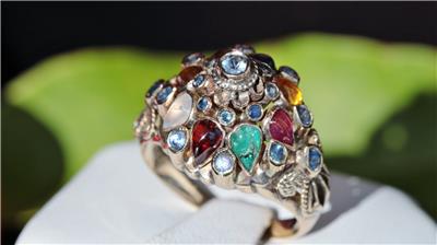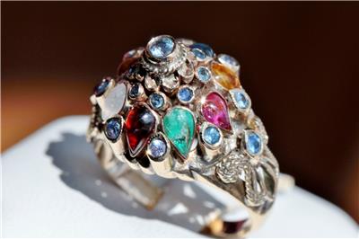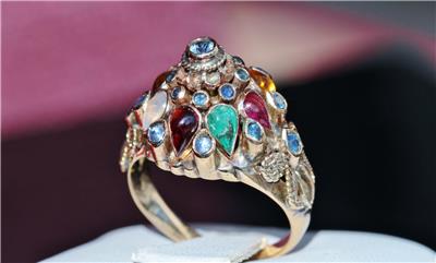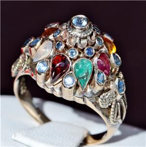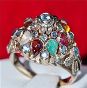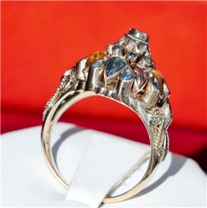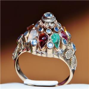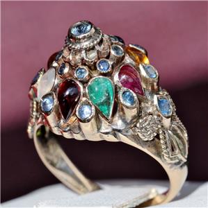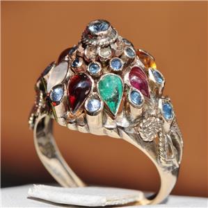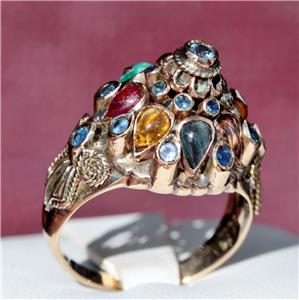1870's Antique size: 6 Handmade 14k Multi-Tone Gold 3.30ct Multi-Gemstone Ring, 5.5 grams