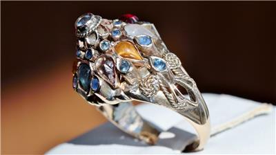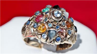 All the stones were bezel set, matching one another, in a beautiful harmonious way and the wonderful combination of the colors.