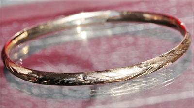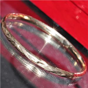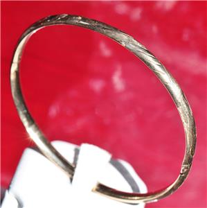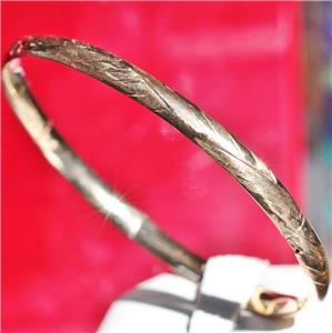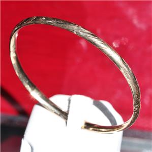 Vintage Handmade 10k Yellow Gold 7.0" Diamond Cut Bangle Bracelet,