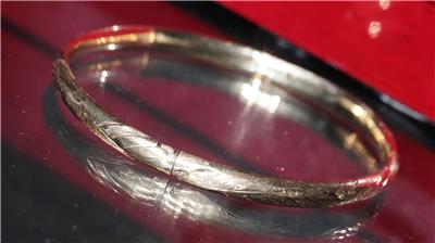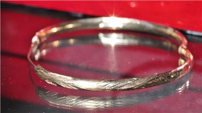 Graded MThis is an absolutely beautiful, handmade 10kt yellow gold bangle bracelet.