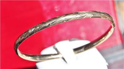 The bangle has a gorgeous shimmering textured pattern, that was applied completely by hand.