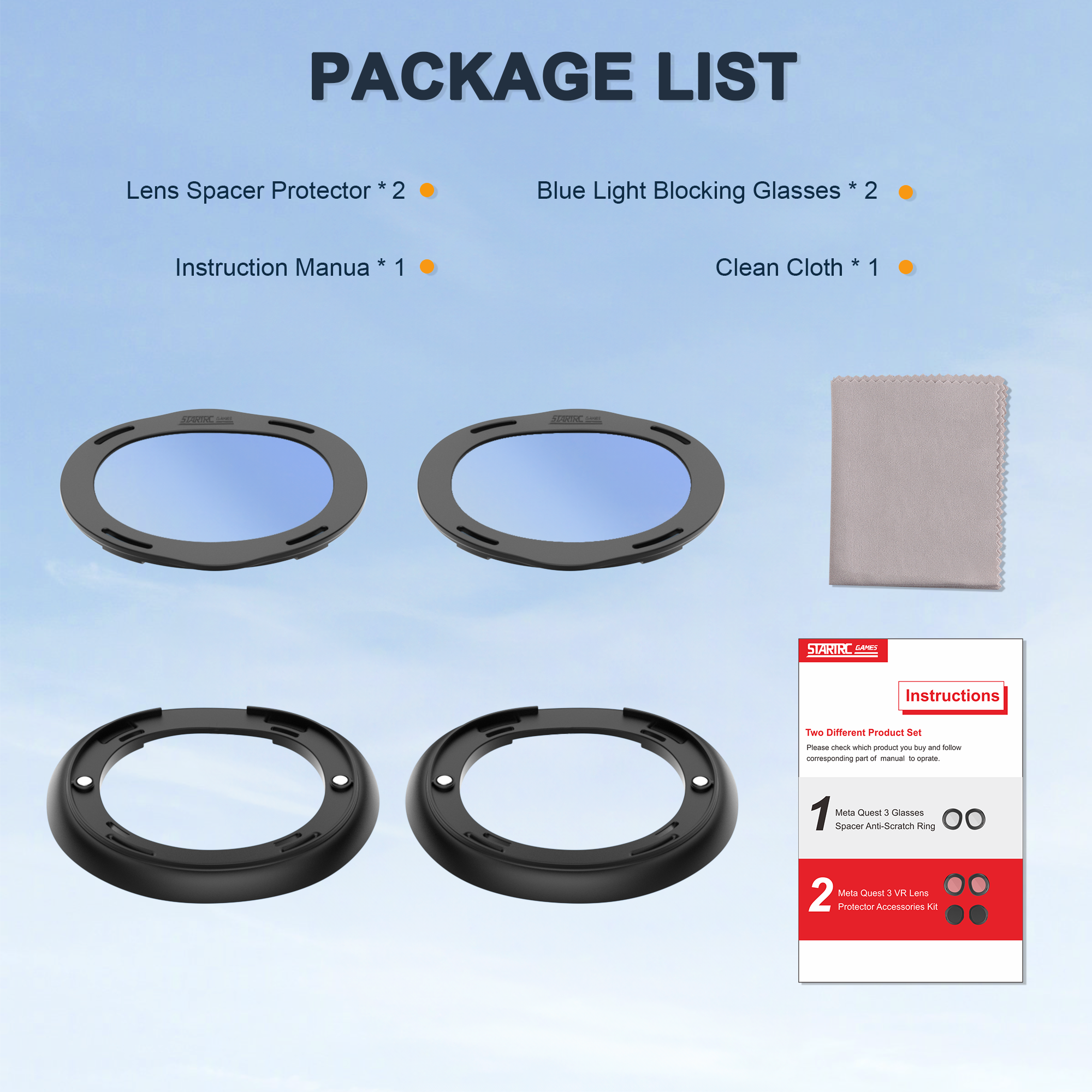 【Package Include】: Our lens protector come with 2x Glasses Spacer Protector, 2x Blue light blocking glasses 1x instruction manua, 1x clean cloth.