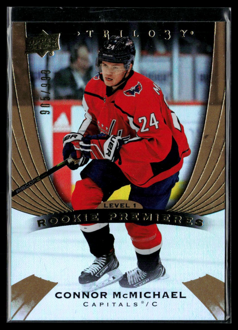 | Description: | Connor McMichael | | Category: | Hockey | | Year: | 2020 | | Product: | Upper Deck Trilogy | | Team: | Washington Capitals | | Card Number: | 82 | | Rookie: | Yes | | Serial Number: | 905/999 | | Dimensions: | 3¾" x 2¾" | | SKU: | HK A0030 R02 J (1) |