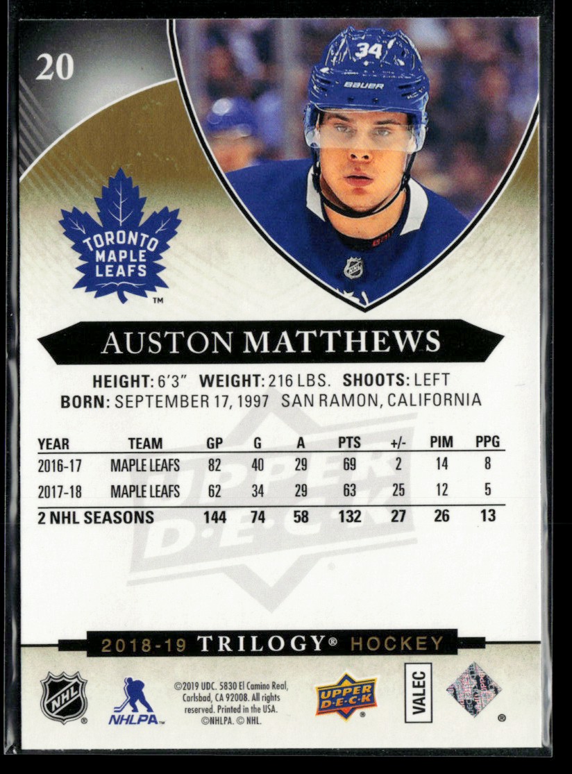 | 2018-19 Upper Deck Trilogy Auston Matthews #20 |