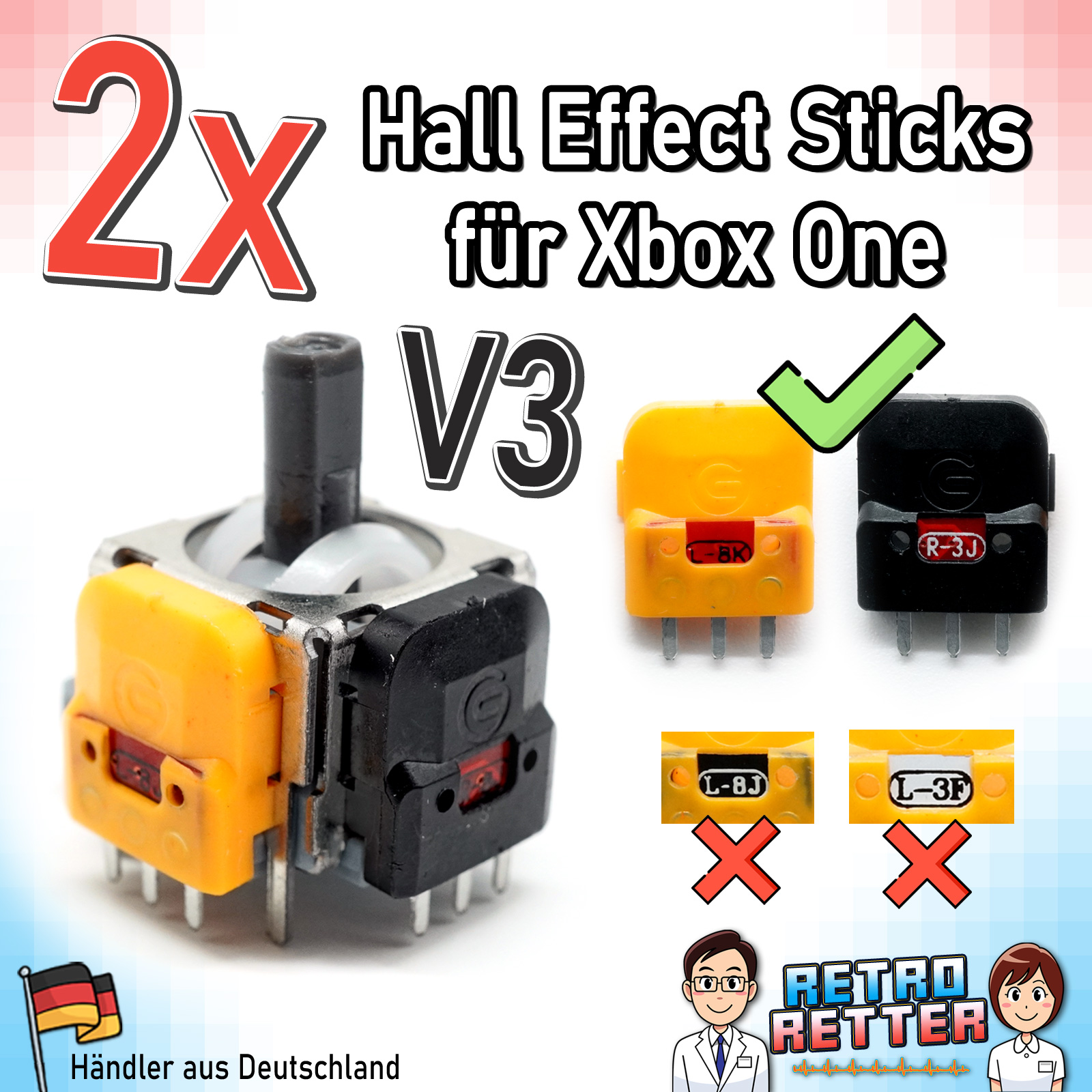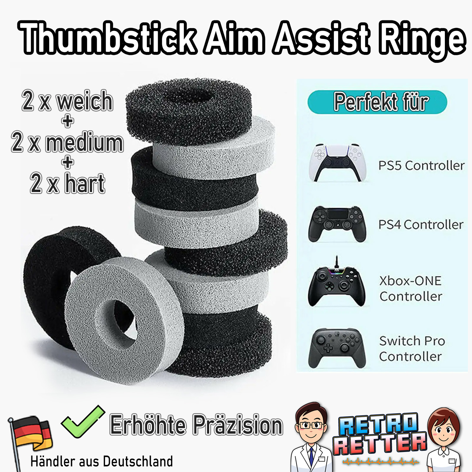 Die RetroRetter sind mit Hingabe und Leidenschaft im Einsatz, um für dich das beste Retro Konsolen Zubehör und die hochwetigsten Ersatzteile zu finden. So auch bei diesen Thumbstick Kappen für deinen Xbox One Controller. Die Qualität der Thumbstick Caps entspricht den Original Xbox One Controller Thumbsticks.