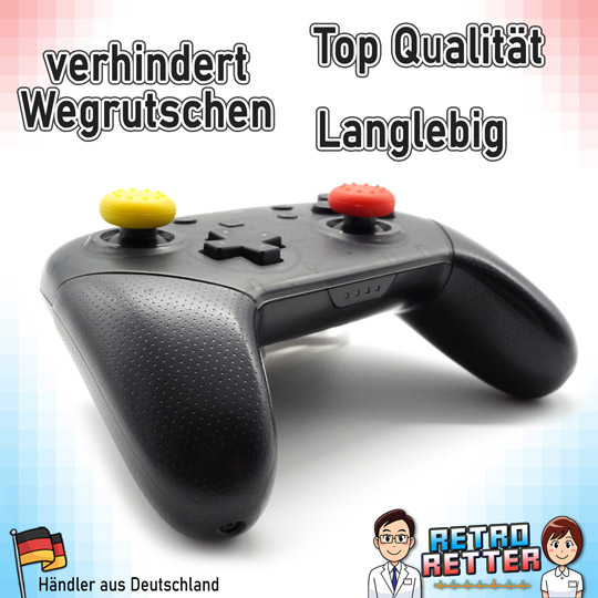 Die RetroRetter sind mit Hingabe und Leidenschaft im Einsatz, um für dich das beste Konsolen Zubehör und die hochwetigsten Ersatzteile zu finden. So auch bei diesen Silikon Thumbstick Caps, die du mit einer Vielzahl von Konsolen Controllern verwenden kannst: