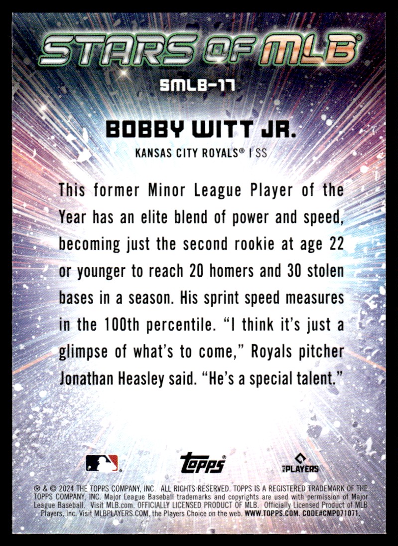 | 2024 Topps Stars of MLB Bobby Witt Jr. Kansas City Royals #SMLB-17 |