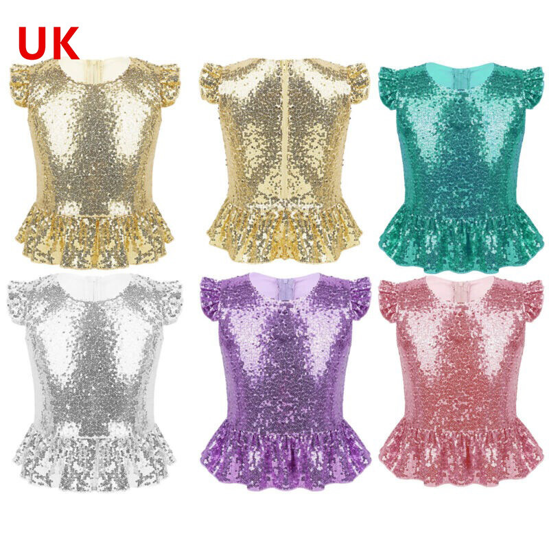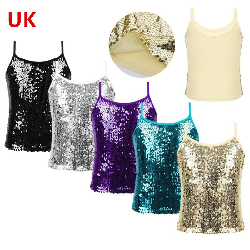 Girl’s sparkly sequins dance top is perfect for pairing with sequins skirt, leather pants, sequins shorts or leggings.