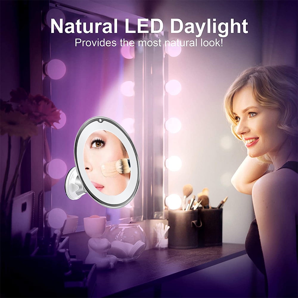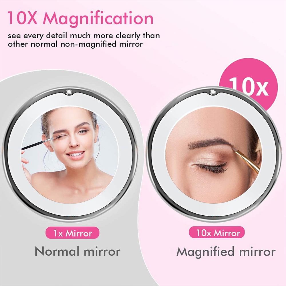 - 𝐏𝐎𝐖𝐄𝐑𝐅𝐔𝐋 𝟏𝟎𝐗 𝐌𝐀𝐆𝐍𝐈𝐅𝐈𝐂𝐀𝐓𝐈𝐎𝐍 - Our LED makeup mirror with a powerful 10x magnification provides exceptional clarity and precision for makeup application, grooming, or skincare routines. NOTE: The 10X magnification is extremely powerful, for a clear, undistorted image, please keep your face within 4 inches of the mirror.