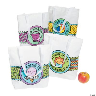 School may be out but reading is always in. A great addition to student crafts and gifts these tote bags encourage little learners to keep up with their reading throughout those warmer months away from school. Each one features a fun design with whimsical sayings like Reading Makes You Brighter next to an image of the sun. Now kids have a handy tote for bringing books with them to the beach playground pool"wherever. Canvas. 12 x 2 1/2 x 12 with 10 nylon handles. ©