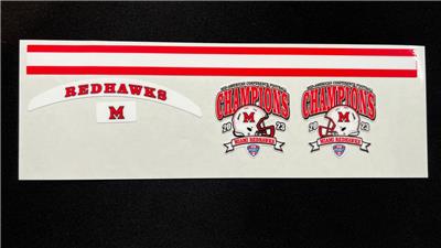 Miami of Ohio Redhawks 2023 MAC Champs Mini Football Helmet Decal Set. You will receive 2 side decals, front bumper, rear bumper & center stripe. Decals are made for a Riddell Speed mini football helmet.