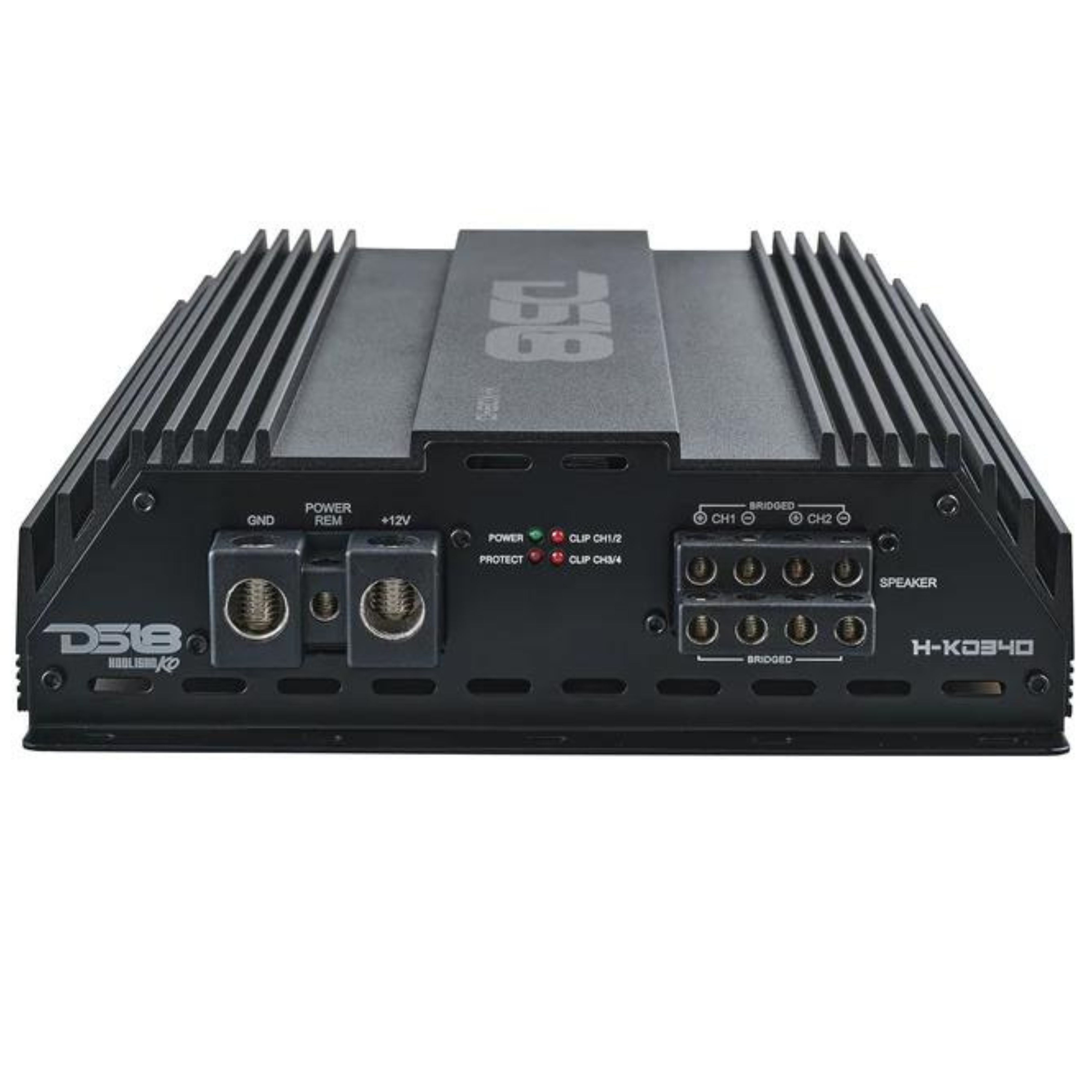DS18’s H-KO340 is a high quality, high performance, and HIGH POWERED 4-Channel Full-Range Class D Competition Amplifier. This Korean-made powerhouse is built to be beefier, more efficient, and even more durable for competition-level performance.