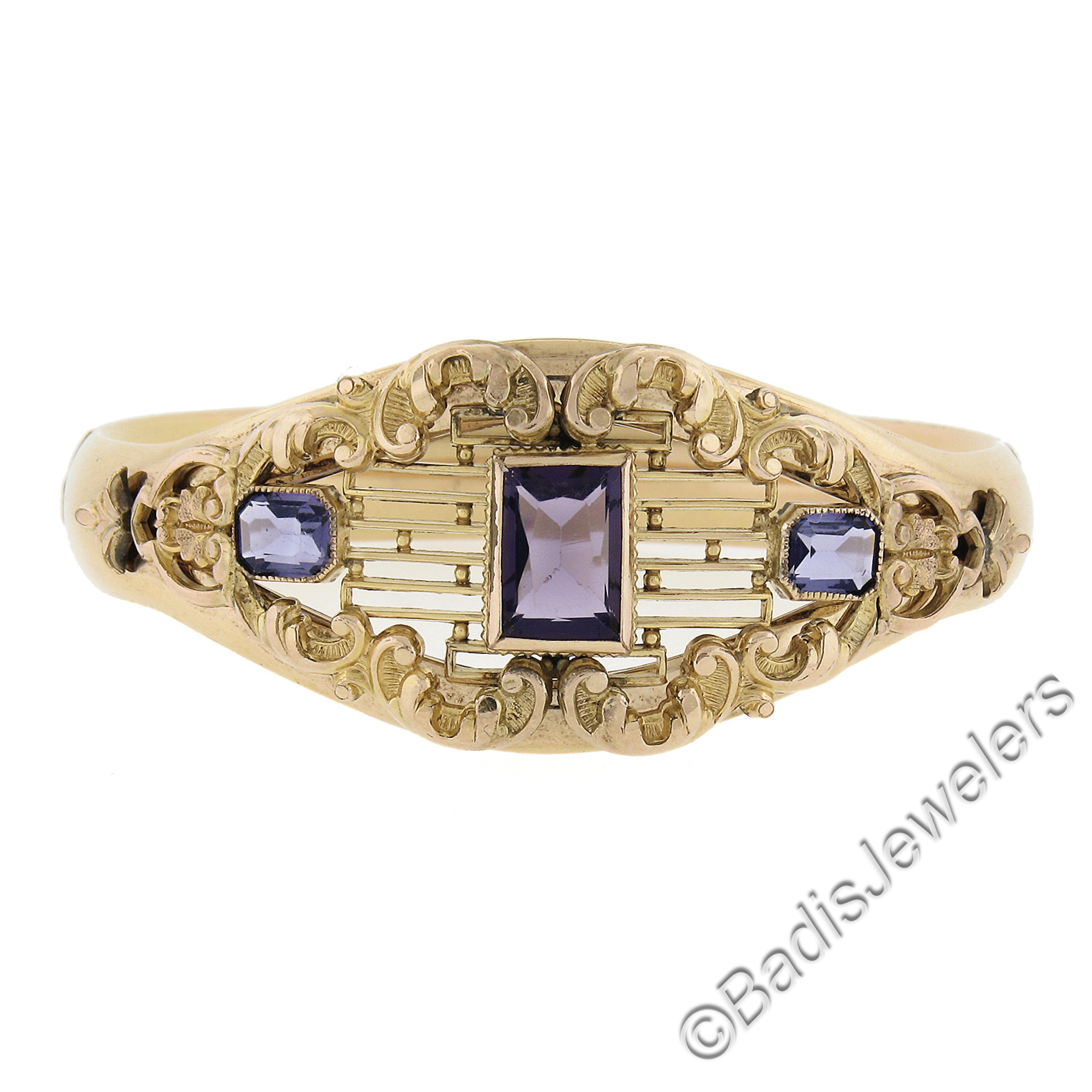 (3) Purple Stones - Rectangular Step Cut & Cut Corners Step Cut - Bezel Set - Purple Color - 11.3x7.6mm (center), 6.6x5.1mm (sides)