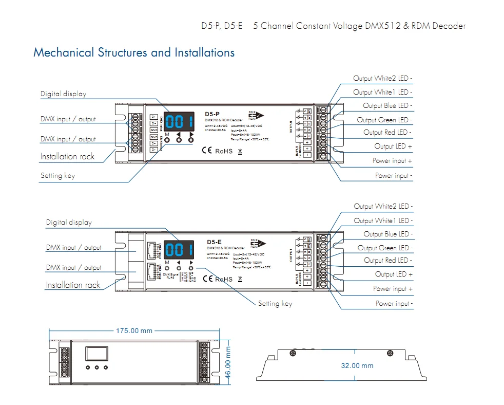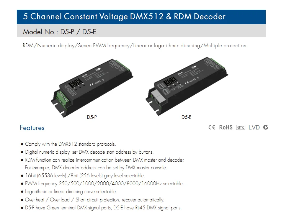 ✨DON'T MISS OUT:D4-E D4-P 4 Channel PWM DMX Decoder D5-E D5-P 5CH DMX512 Controller Digital Display XLR3 RJ45 DC12-36V 24V For RGB RGB +CCT Tape PRODUCT PROPERTY:✨ 1: Visit the sage lu mei brand shop to shop the entire sage lu mei assortment by clicking on the sage lu mei logo above.Our product belongs to rgb controler.The power source is dc.Our product is made in cn(origin). ✨ 2: The voltage of our product is 12-24v. REASONS TO BUY:✨ Decoder: the pwm controller has been designed to be decoded by rgb, which allows you to quickly and easily swap between channels. ✨ Rgb dmx controller: the pwm controller has been designed with advanced rgb inputs and features an easy-to-read, intuitive interface for maximum speed and power transfer. ✨ 5ch dmx512: the rgb controller can be used to display your favorite shows, videos, and more. it also has a built-in hdmx function that allows you to control your devices with maximum speed. ✨ Widely uses: this rgb controller can be used to control all kinds of devices, such as computers, laptops, mobile phones, etc. ✨ Recommended seller: the best sellers in the industry, they are always appreciated! if you have any questions, please feel free to contact us, we will promptly reply as soon as possible! RELATED INFO:✨ Dmx rj45: the rgb controller is engineered to work with all rgb channels. this technology allows you to keep up with your favorite shows and keeps you looking for the best out of the box.