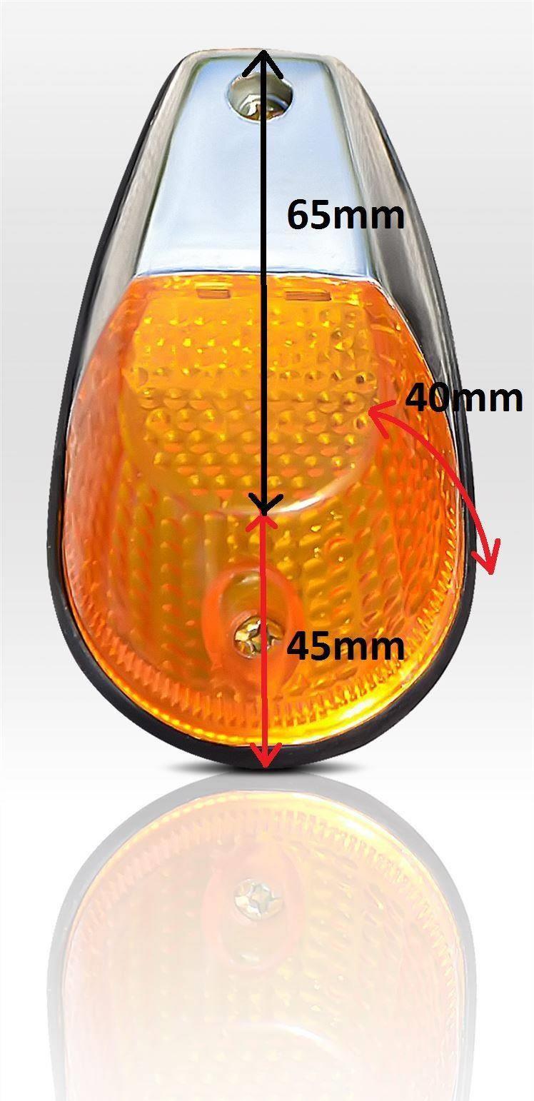 High quality Amber LED Corner Chrome Surround Marker Light x10. These units have 8 emitting LEDs (Most similar units use only 6) and give a higher illumination than other similar units resulting in greater road safety. This is reliable longer lasting unit that is applicable for your 12 volt car, van, trailer or 4x4 as well as being popular as a truck marker light (24volt).