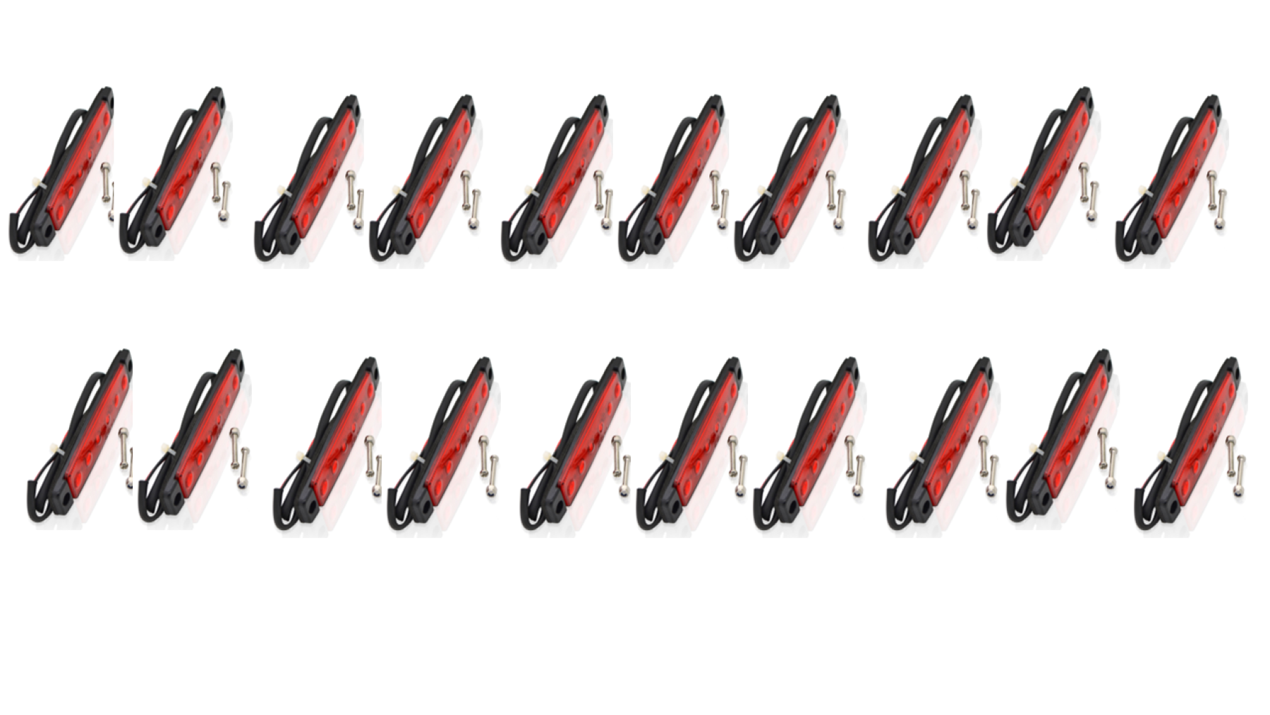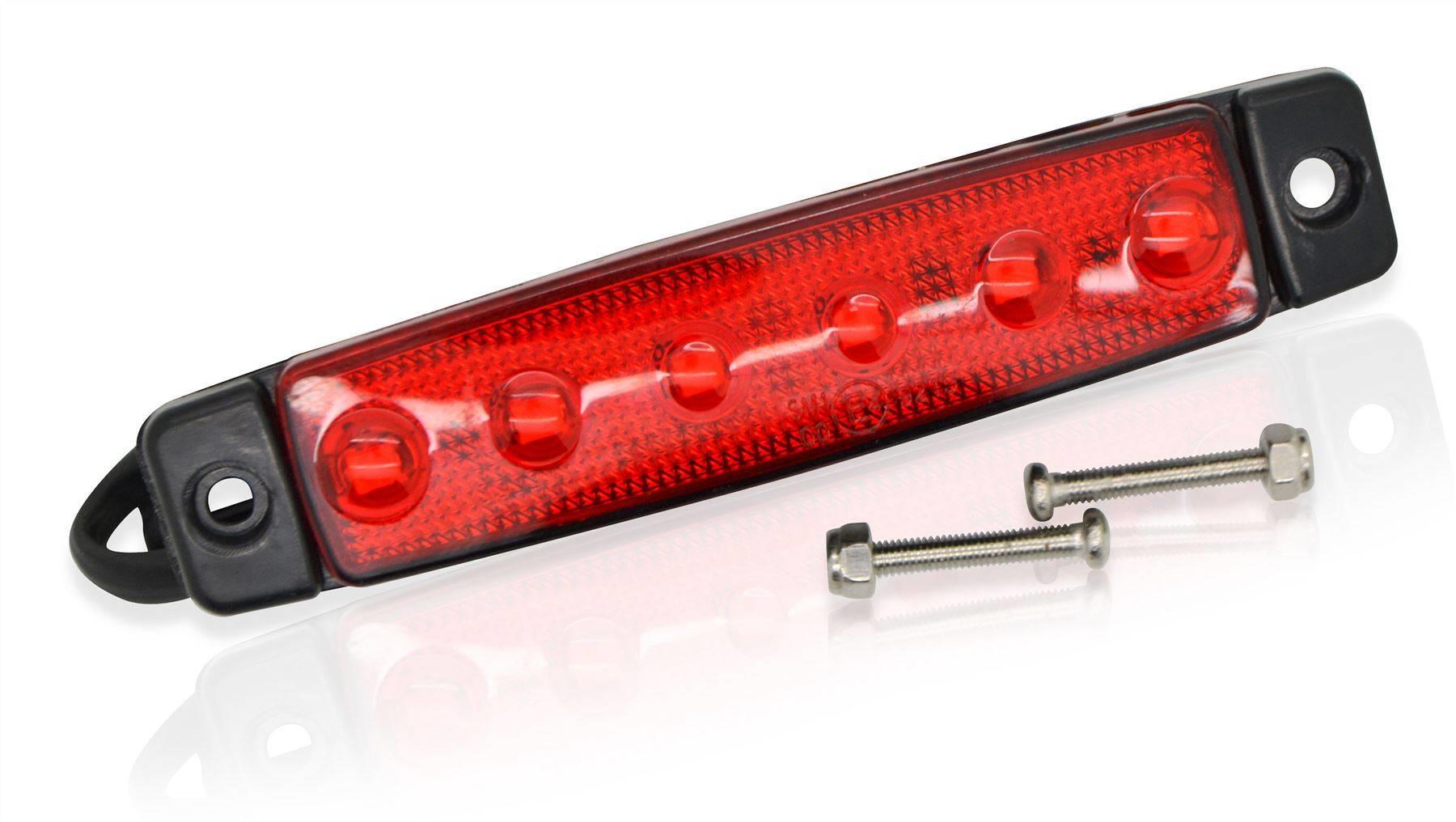 High quality 20x 24v Red LED Slimline Flush Fitting Surface Mount Position Light. These units have 6 LED lights and give a higher illumination than other similar units resulting in greater road safety. This is reliable longer lasting unit that is applicable for suv, van or 4x4 marker lights.