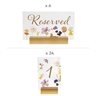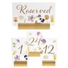 Add this helpful kit to your wedding reception supplies must-haves list! Featuring lovely table numbers from 1 to 24 along with “reserved” signs, these pretty table signs will help guests figure out where to sit while adding some floral accents to tables. Help avoid table confusion with reception guests with the help of this kit. (30 pcs. per unit) Assortment may vary. Includes: • 6 Plastic Pressed Flower Reserved Signs (8" x 4 1/2") • 24 Plastic Pressed Flower Table Numbers (4" x 1" x 6")