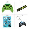 While the kids bring their controllers, you’ll be bringing the prizes! This awesome prize kit has all the items needed to make sure you have plenty of cool favors to handout at a gamer-themed birthday party or tournament event. Featuring rad designs and colors, these fun picks are sure to delight keyboard warriors and noobs alike. (84 pcs. per unit) br br Includes:br • 24 Rubber Gamer Bracelets (7 1/4" circ.)br • 24 Paper Game Controller Shaped Notepads (5” 25 blank pgs.)br • 12 Vinyl Gamer Rubber Ducks (2 1/4" Duckies do not float upright.)br • 24 Gamer Sticker Sheets (5" x 7")br br • Assortments are subject to change at any time and may vary from picture shown. Substituted items will be similar in nature.