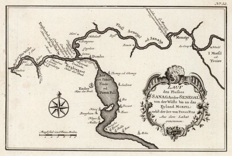 SENEGAL: LAUF DES SENEGAL: Kst.- Karte, n. Bellin, 'Lauf des Flußes Sanaga oder Senegal von der Wüste bis an das Eyland Morfil; nebst der See von Pania Fuli ..',