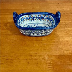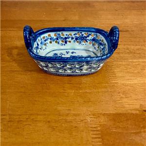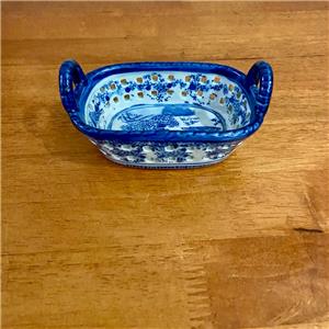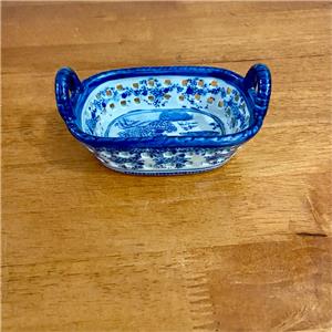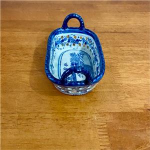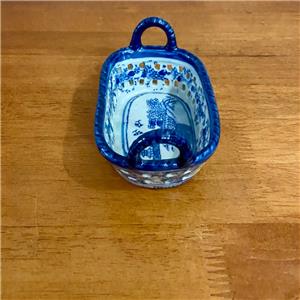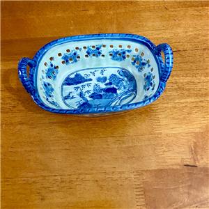 Variant Blue Willow Ironstone Twin Handled Trinket or Vanity Basket , Small 5.5in x 3.5in x 3In (J0524)