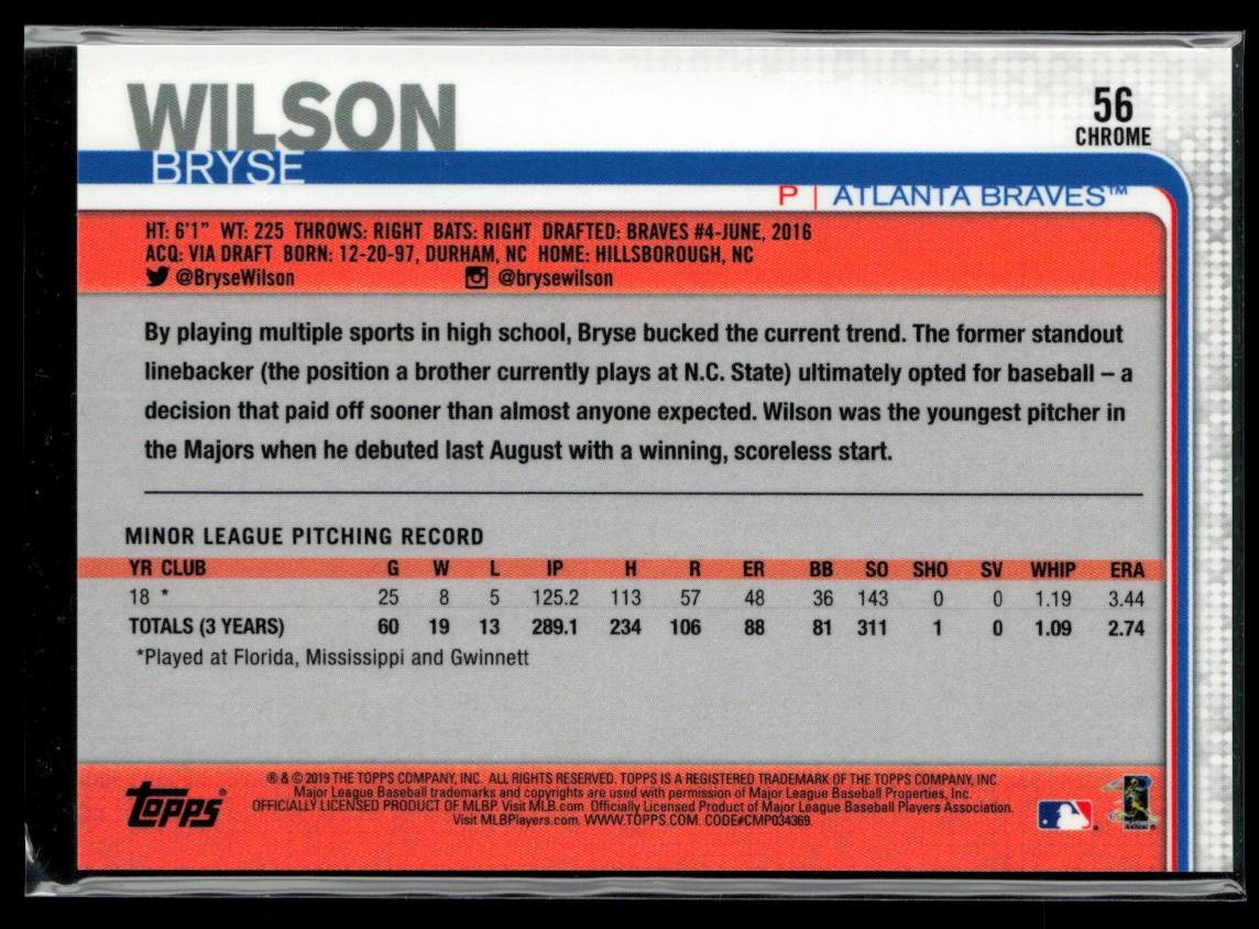 | 2019 Topps Chrome Negative Refractor #56 Bryse Wilson RC |