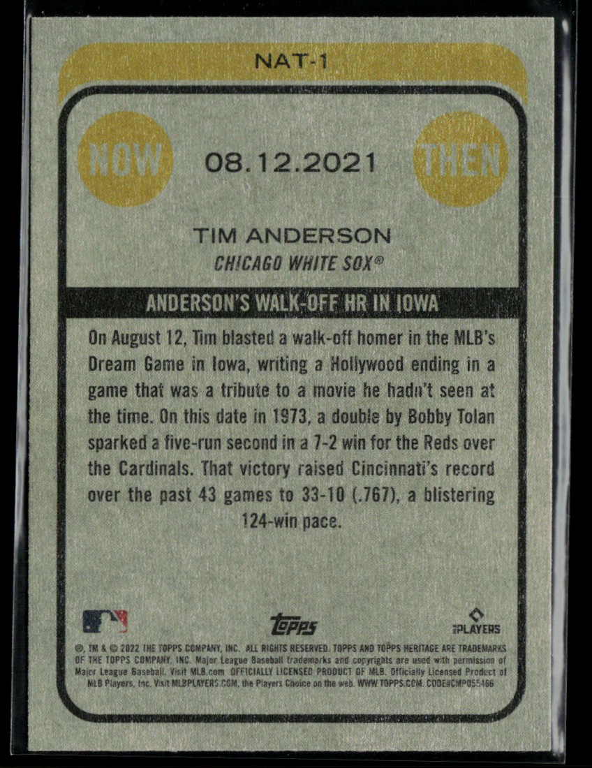 | 2022 Topps Heritage High Number Now and Then #NAT-1 Tim Anderson |