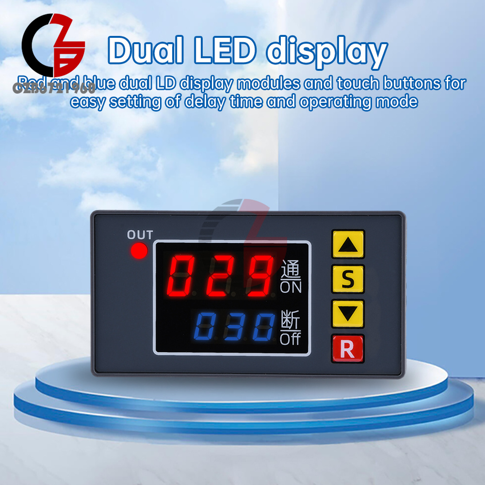 2. Dual LED display: red and blue dual LED display module and touch buttons, easy to set the delay time and working mode.