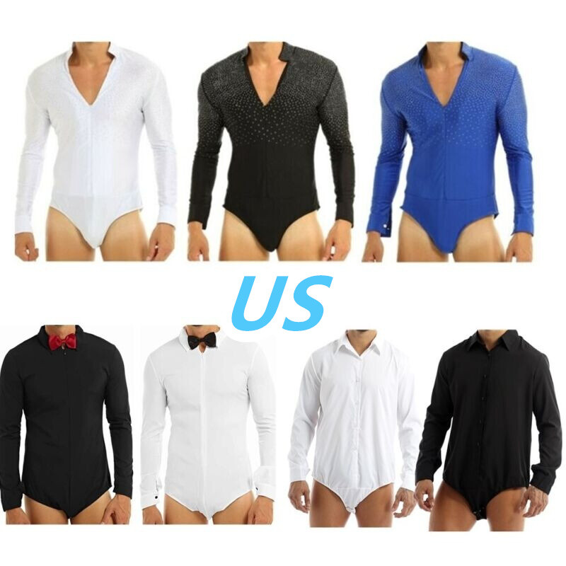 Mens Long Sleeve Mock Neck Bodysuit Leotard Button Crotch Jumpsuit Undershirt