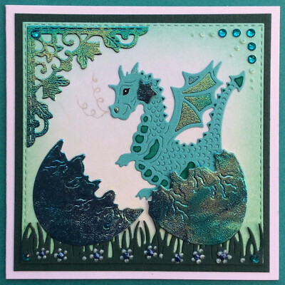 Speaking of the egg, it’s quite versatile. Omit the baby dragon and the egg could be a dinosaur’s, chicken’s, penguin’s, etc. The two die cuts can be aligned together to form a not yet hatched egg. Just brilliant!