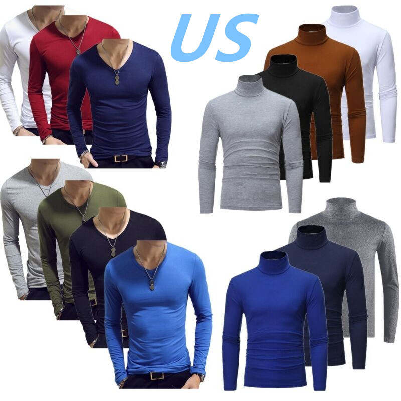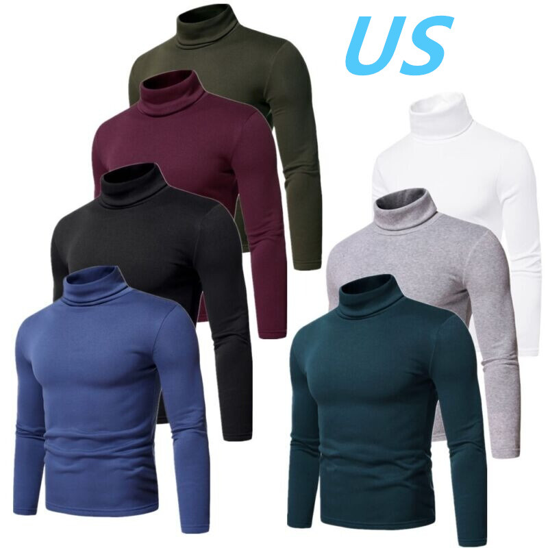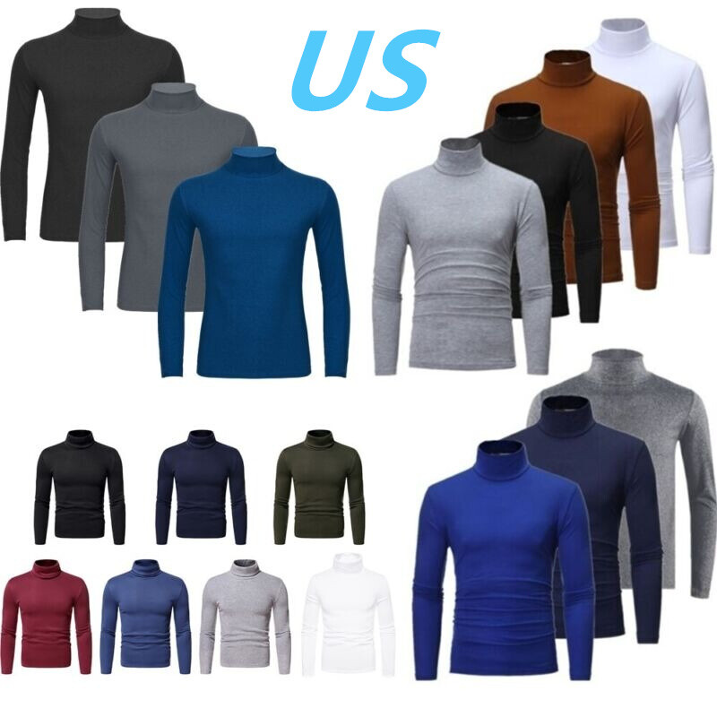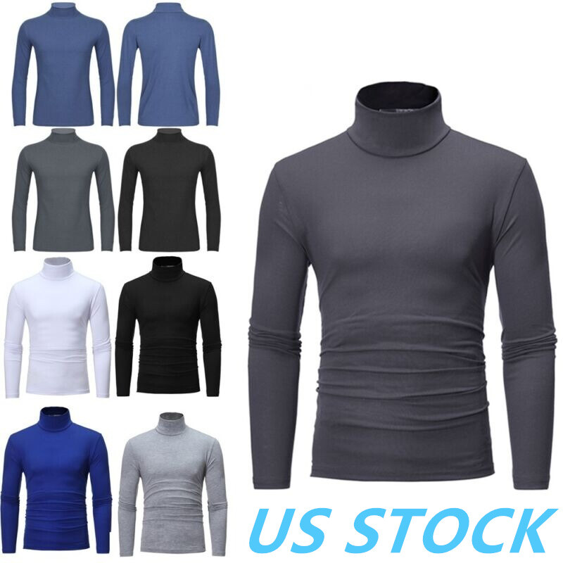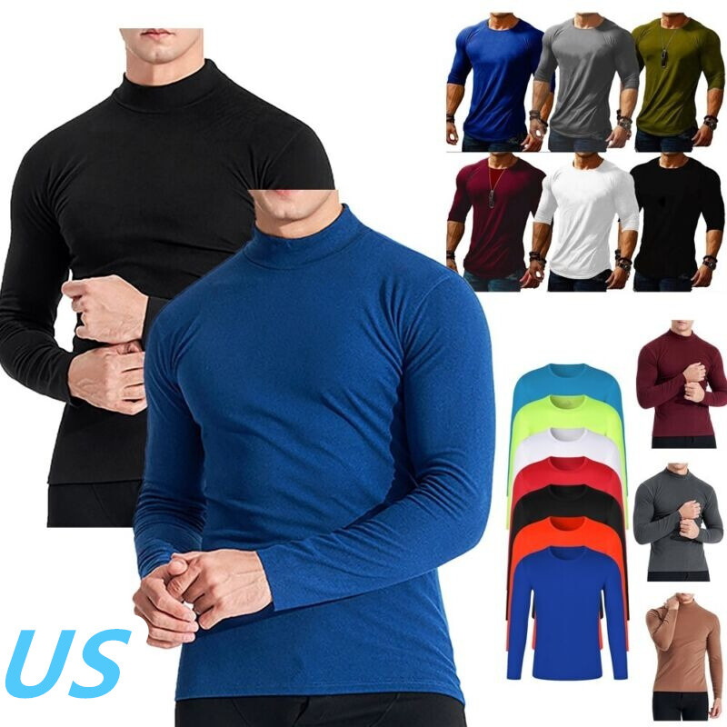 Men's Turtleneck Long Sleeve Pullover Tops Casual Compression T-Shirt Activewear