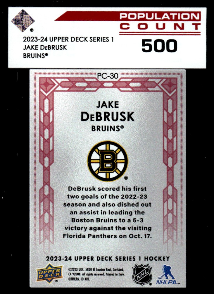 | 2023-24 Upper Deck Population Count 500 Jake DeBrusk Boston Bruins #PC-30 |