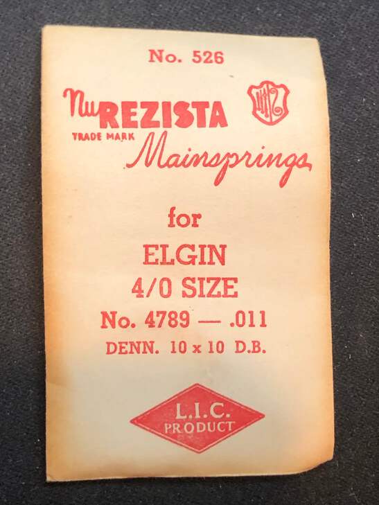 NuRezista Mainspring #526 for Elgin 4/0s movements, Factory No, 4789, steel, new in envelope. See images for precise mainspring specifications. I specialize is hard to find watch parts so I usually have whatever you might need and all watch parts are unconditionally guaranteed. Images do an adequate job of representing the item.