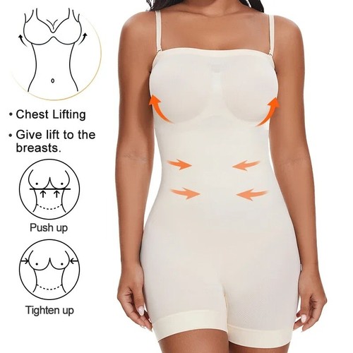 - STRAPLESS BODYSUIT SHAPEWEAR: Shapewear bodysuit comes with adjustable and removable shoulder straps. Thanks to the built-in no slip silicone lining, allowing the option to wear it strapless with confidence. The innovative 3D chest design of the body shaper tummy control provides full breast support without compression, ensuring a natural and more lifted shape.The carefully crafted pleats enhance the bust area, while also accentuating the collarbone, culminating in an elegant silhouette.