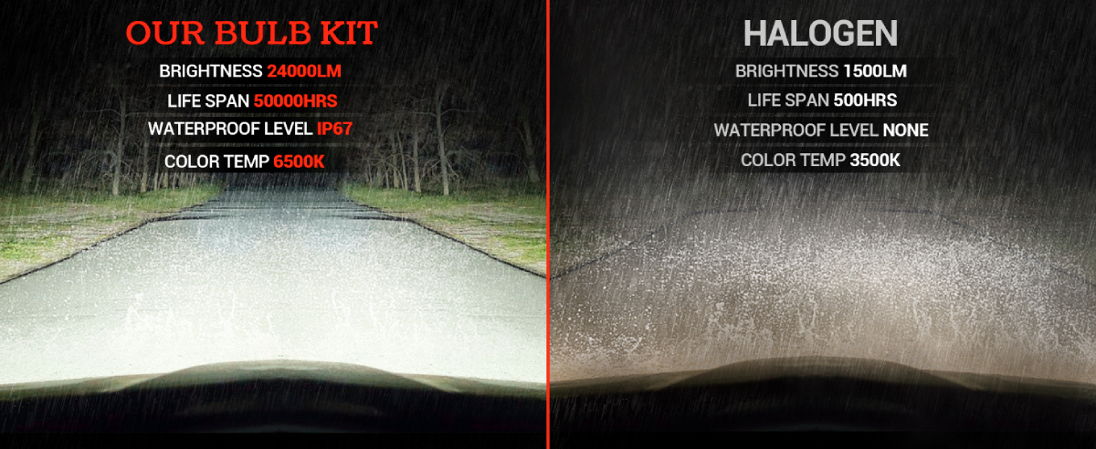 H11 driving bulbs using the most advanced packaging technology, and waterproof rubber ring. IP65 waterproof rating helps ensure safe driving even in extreme weather conditions