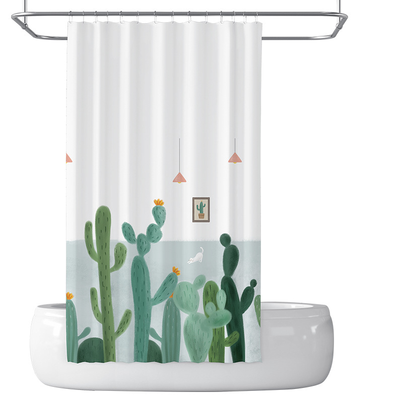 Cactus Shower Curtain Waterproof Mildew Resistant Bathroom with 12 Hooks