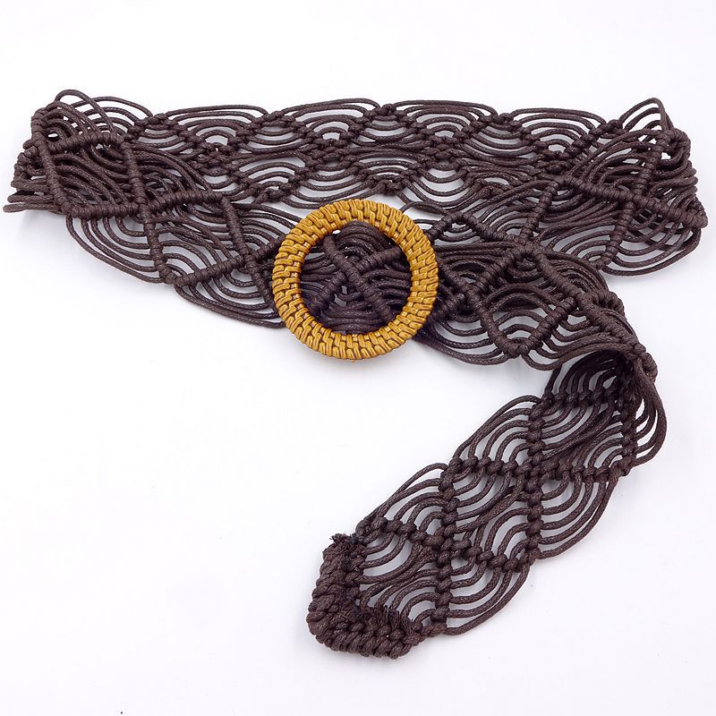 Lady Woven Waist Belt Braided Boho Buckle Ethnic Casual for Dress Retro Fashion