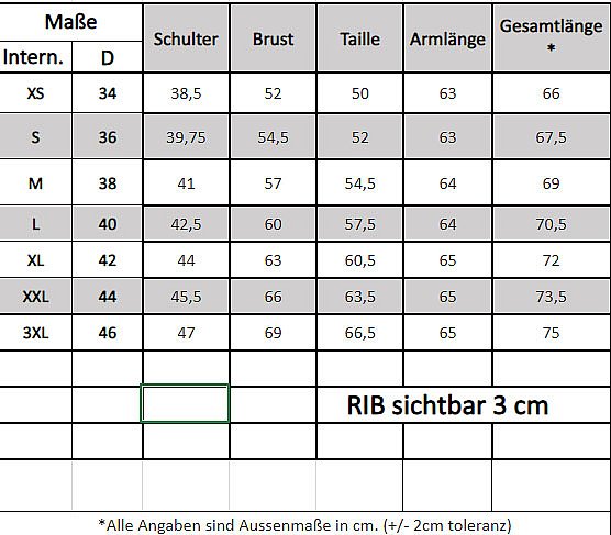 Bitte Maßtabelle beachten!