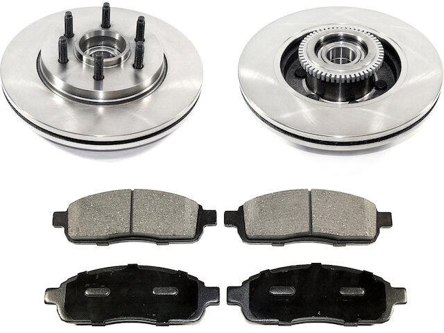 Notes: Brake Pad and Rotor Kit -- 6 Lug; Includes hub bearing; spindle nut must be replaced! Torque spindle nut to 295 ft-lbs (400 Nm), rotate 5 times in counterclockwise direction and recheck torque. This ensures bearing seat. Failure will result if not completed correctly.; Traditional brake rotors - Semi-Metallic brake pads