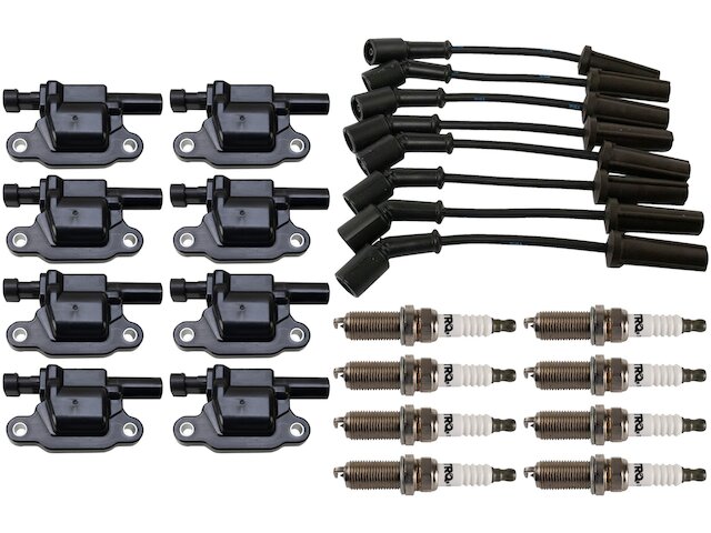 Package Contents: (8) Ignition Coils; (1) Spark Plug Wire Set; (8) Spark Plugs