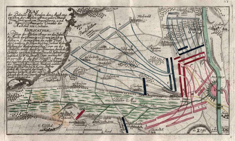 Mit schematischer Einzeichnung der Truppenstellungen und Kartusche mit Erklärungen ( von 1 - O ) oben links