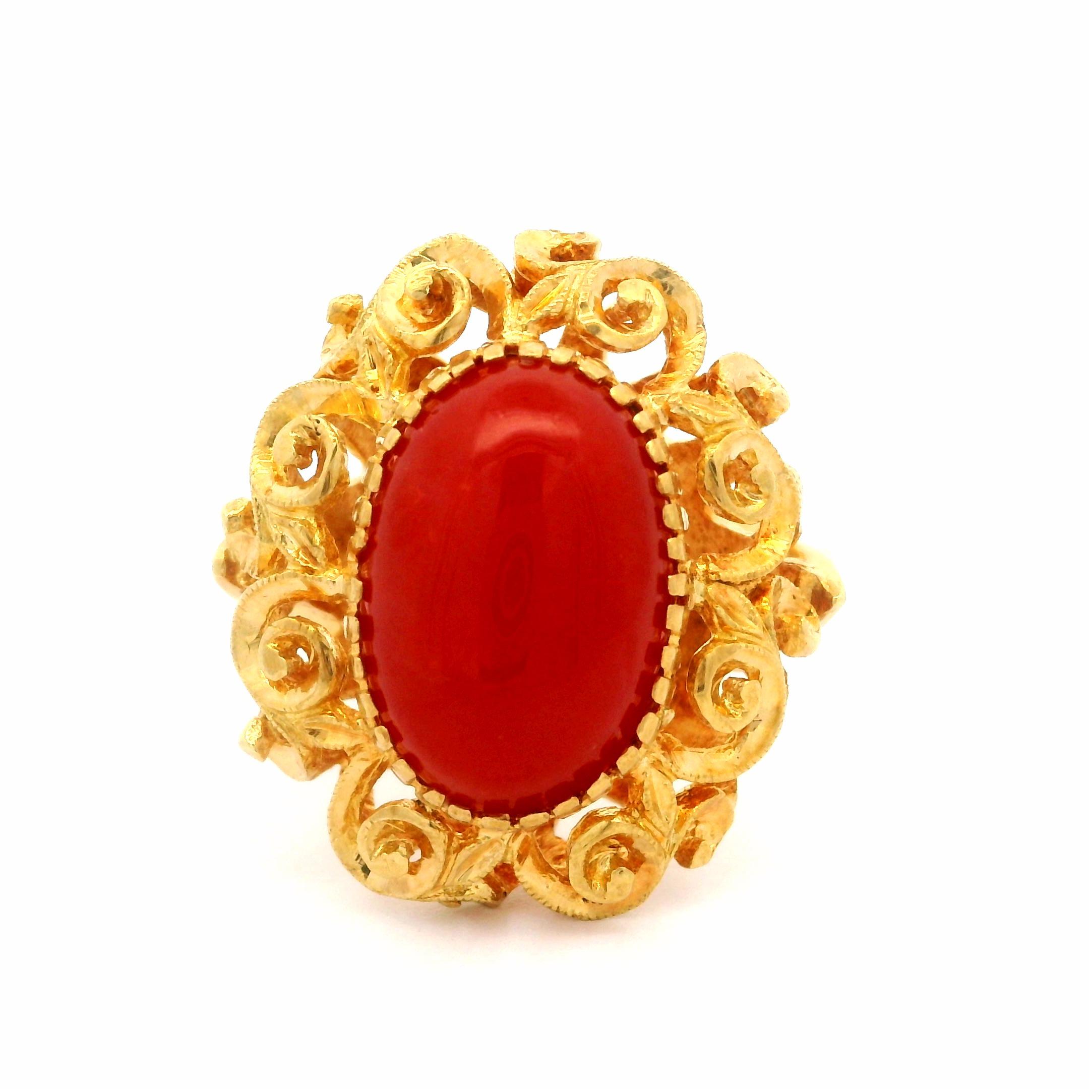 (1) Natural Genuine Coral - Oval Cabochon Cut - Multi-Prong Set Bezel Style- Deep Orange Red Color - 11.6x7.7mm (approx.)